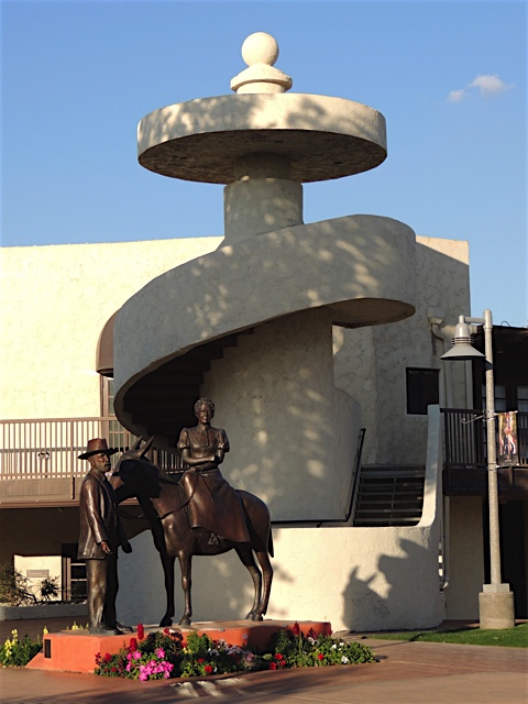 The Winfield Scott Memorial is located on the Scottsdale Civic Center Mall area right next to the spiral stairway lookout. It was commissioned through the Scottsdale Public Art program to honor the couple, Winfield and Helen Scott, the founders of Scottsdale Arizona.