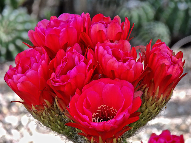I love the bright colors. We don't see such a variety of cactus plants here, but we do see a few. I don't recall any as bright as this.