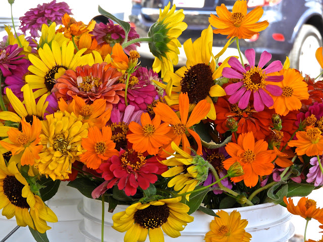 As usual, there were some beautiful flowers available at the Farmer's Market last Saturday. I thought a photo of a nice big sunflower would spread some sunshine around.