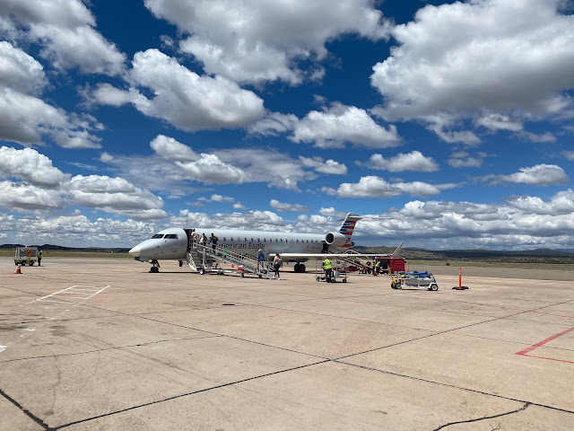 This last photo is from the airport preparing to board the plane. The Santa Fe airport is tiny. They have two gates but only use one and they have no jetways as you can see. However, the star of this photo is the sky. Isn't that a beautiful sky?