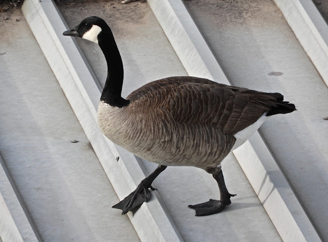 If you have been following my blog for any length of time, you probably remember that every spring a pair of Canadian geese find a spot somewhere around our parking lot to build their nest. As far as I know, no one has found the exact spot. However, they start hanging out in the parking lot at the beginning of March. When I returned home on Saturday, this fellow was sitting in the middle of the driveway. I stopped the car and had a little chat with him. I told him he should move because it wasn't safe to sit in the middle of the road. He listened but didn't budge.